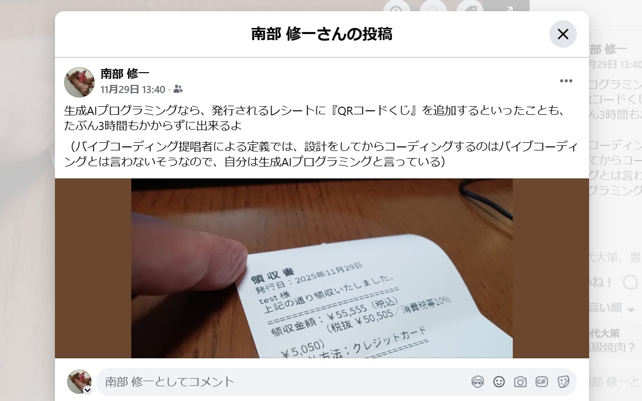 発行されるレシートに『QRコードくじ』を追加するといったカスタマイズなども、要望があればすぐに(3時間程度で)実装できます。
